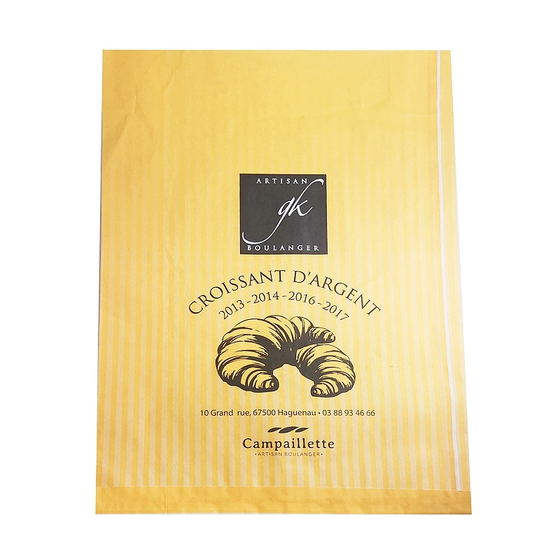 Le sac viennoisserie personnalisé vous permet de mettre en avant votre établissement en mettant en avant votre logo. Indispensable pour les pâtisseries et boulangeries, il permet à vos clients de vous faire de la publicité en divulguant vos produits dans la rue.